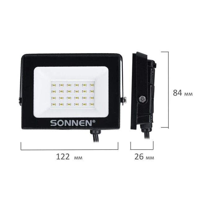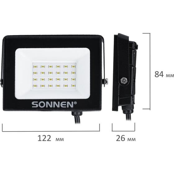 Прожектор светодиодный SONNEN 238412 20Вт, 6500К, 1600Лм, 20м2, IP65, 122x84x26мм, черный