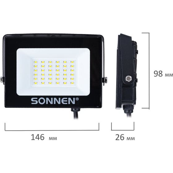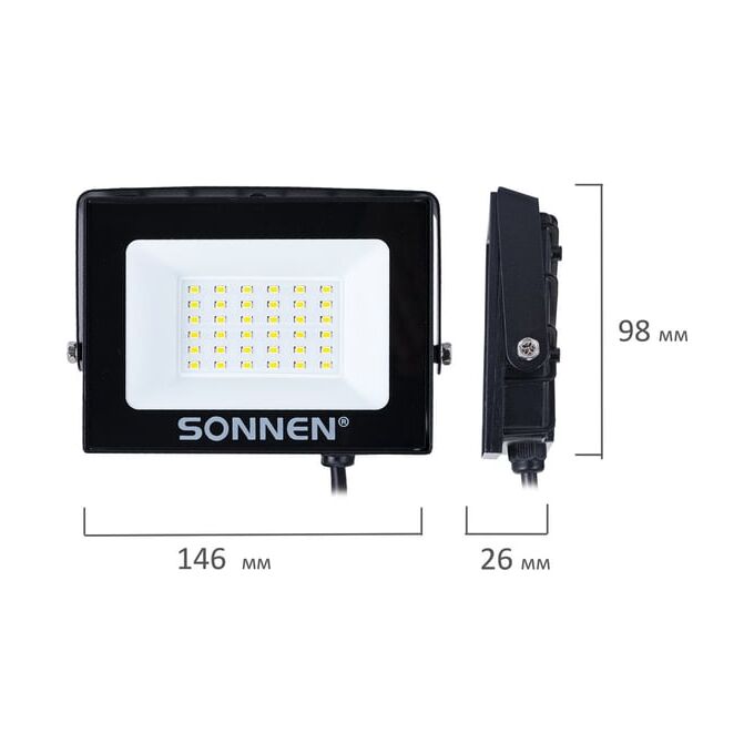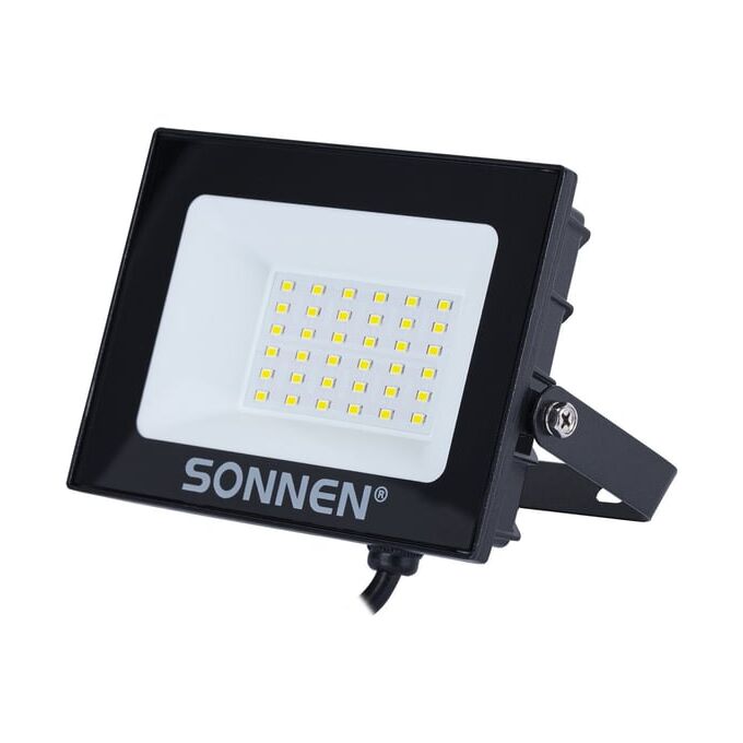 Прожектор светодиодный SONNEN 238413 30Вт, 6500К, 2400Лм, 30м2, IP65, 146x98x26мм, черный