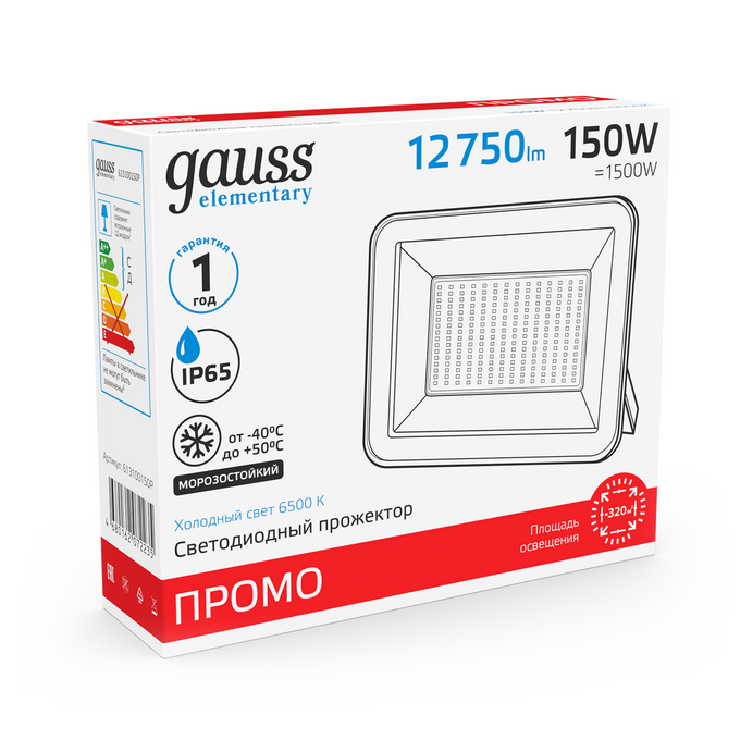 Прожектор уличный GAUSS 613100150P, 150Вт