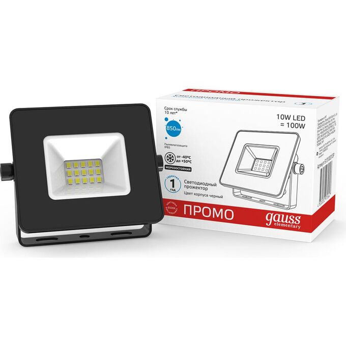 Прожектор уличный Gauss Elementary 613100310P светодиодный 10Вт корп.мет.черный