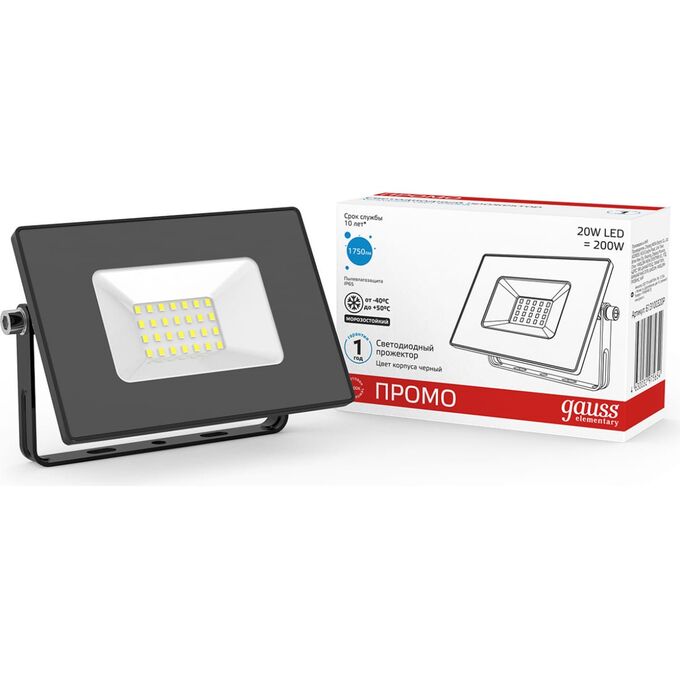 Прожектор уличный Gauss Elementary 613100320P светодиодный 20Вт корп.мет.черный