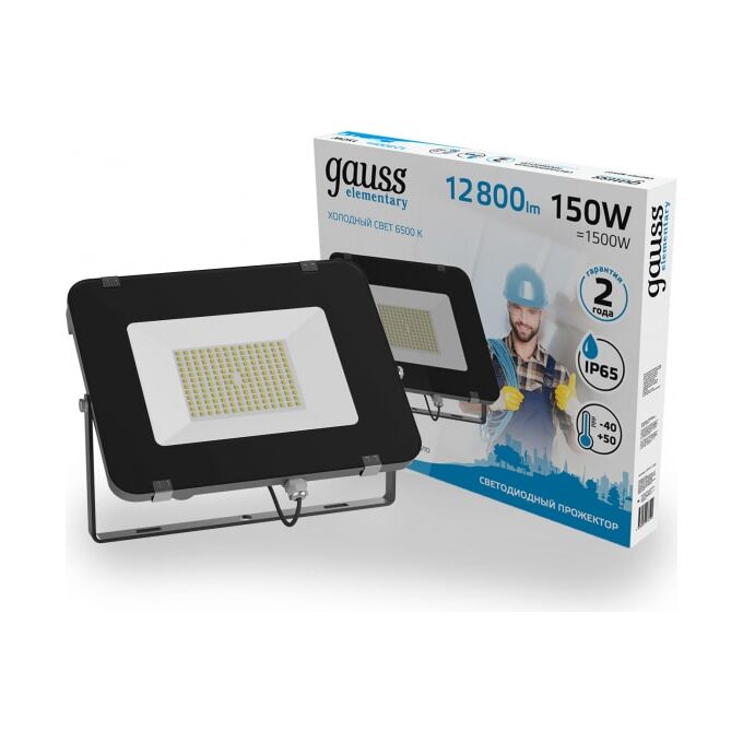 Светодиодный прожектор Gauss Elementary 150W 12800lm IP65 6500K, черный 691511150 созданный для экстерьерной общей подсветки зданий и сооружений, освещения складов, промышленных и торговых объектов, а также ландшафтных объектов, теперь имеет улучшенную модификацию корпуса.