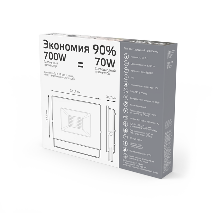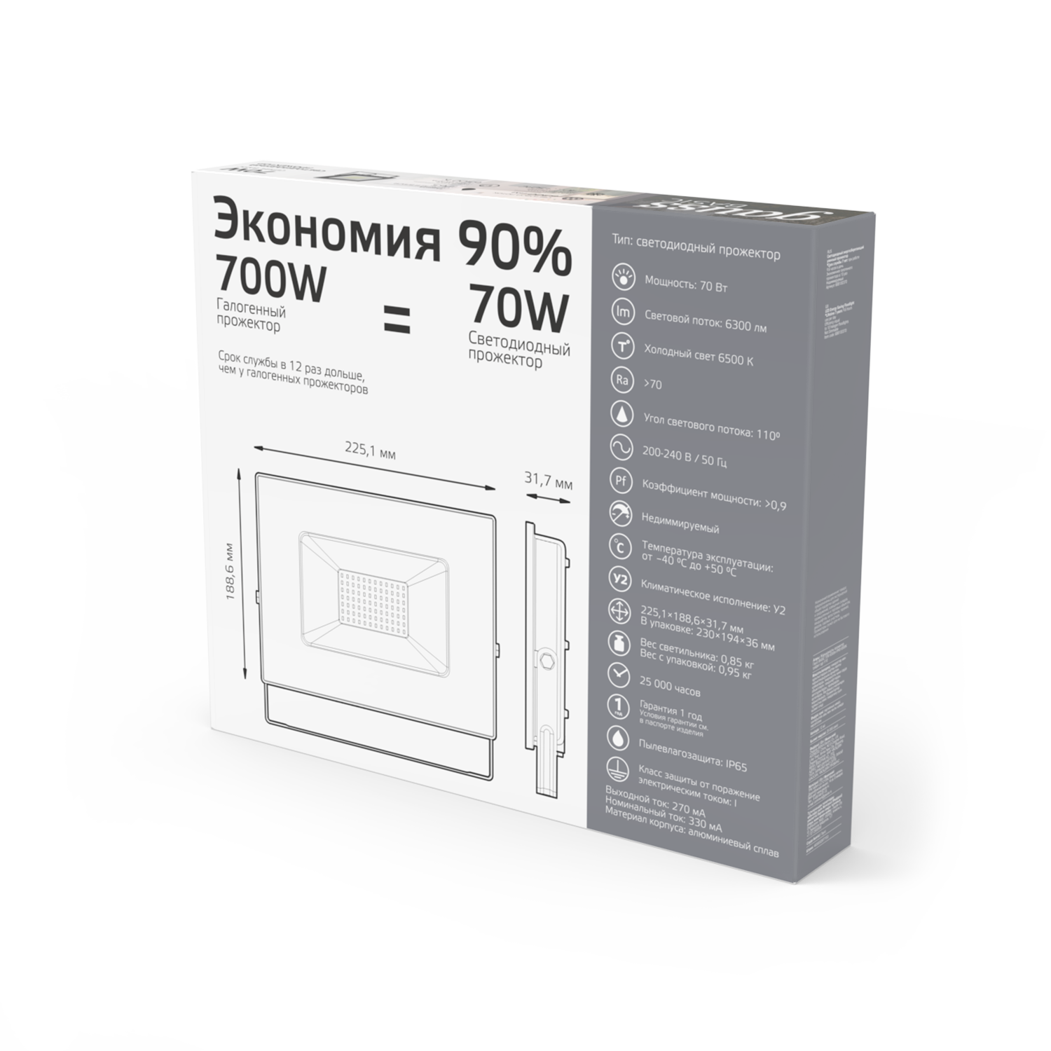 Прожектор уличный Gauss Qplus 688100370 светодиодный 70Вт графитовый