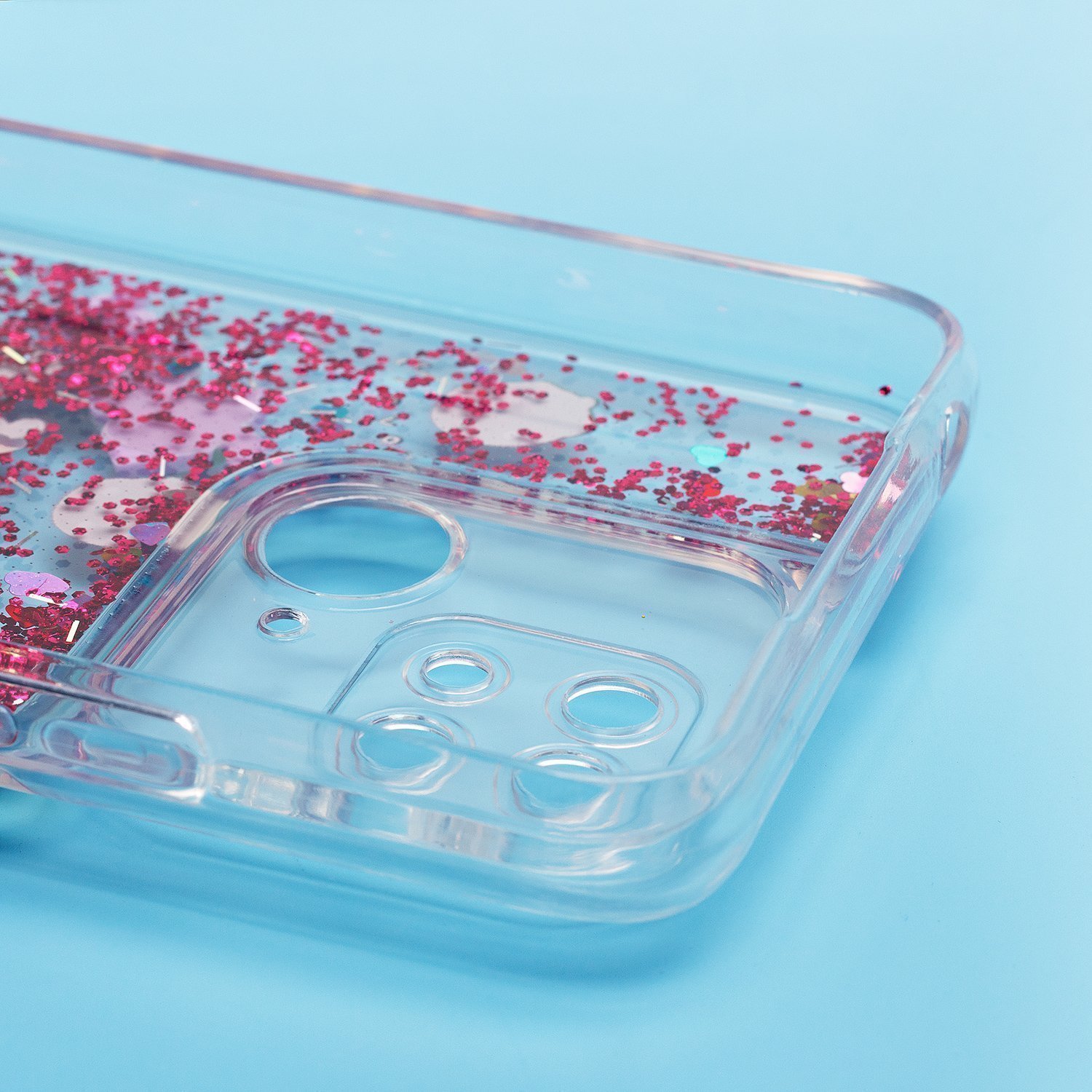 Прозрачный, силиконовый чехол с объемными забавными стикерами и блёстками.