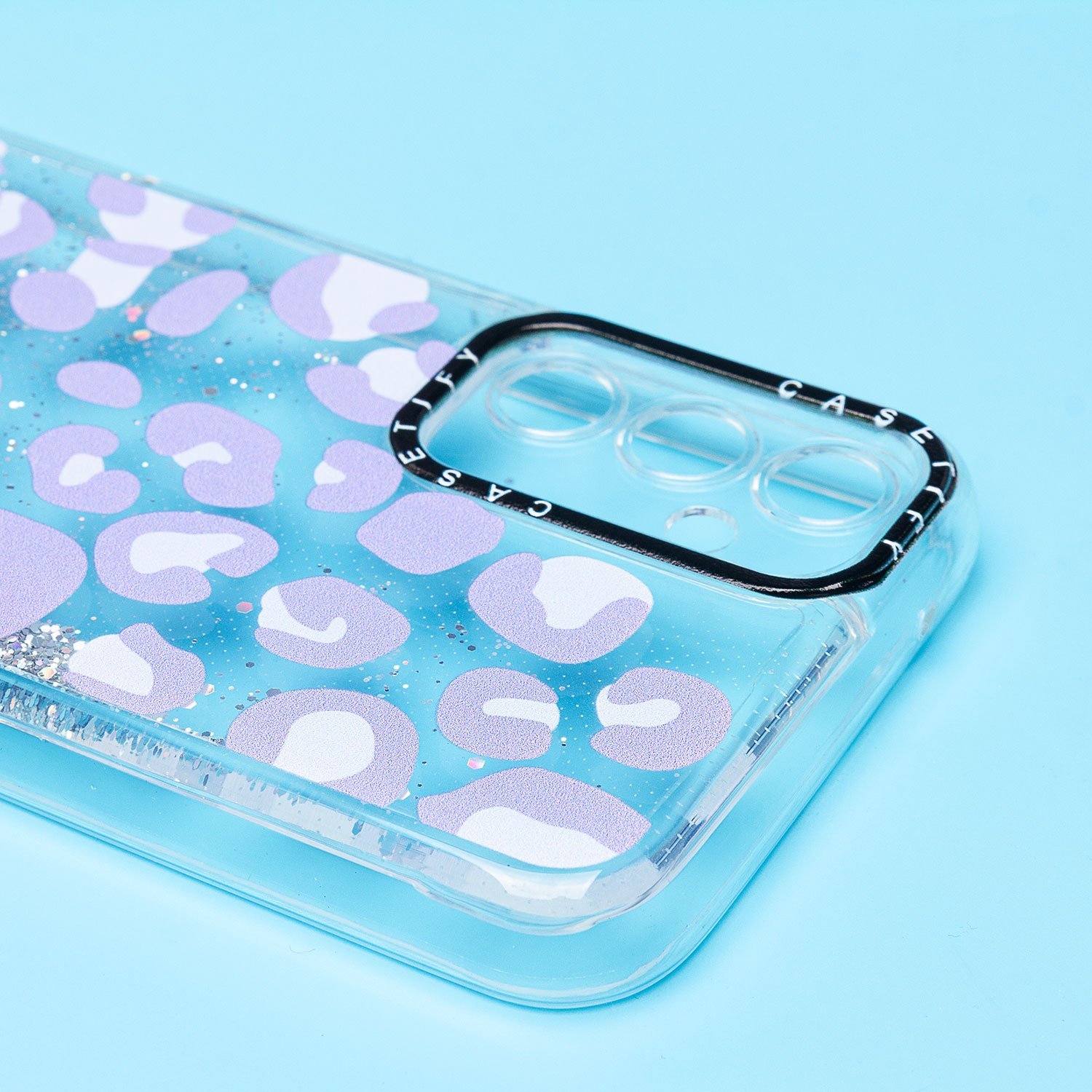 Прозрачный, силиконовый чехол с забавными рисунками и переливающимися внутри блёстками.