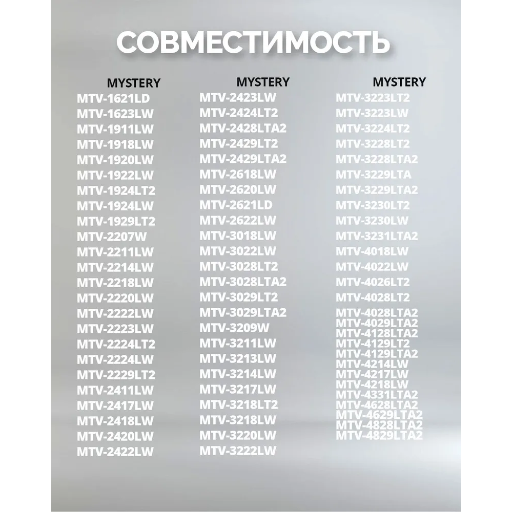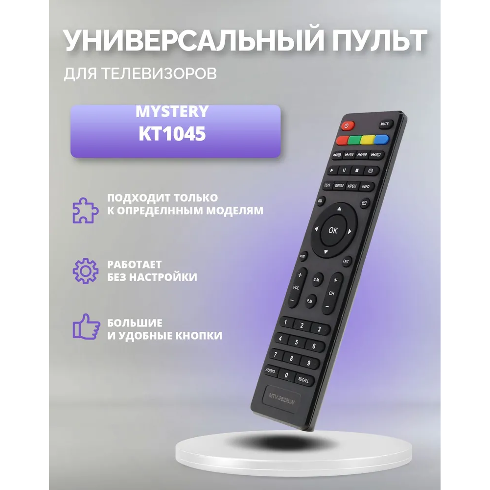 Пульт Huayu для Mystery MTV-2622LW (KT1045) изготовлен из качественного пластика, который не имеет запаха и очень устойчив к падениям с небольшой высоты. Пульт Huayu для Mystery MTV-2622LW (KT1045) при правильной эксплуатации будет служить вам долгое время!