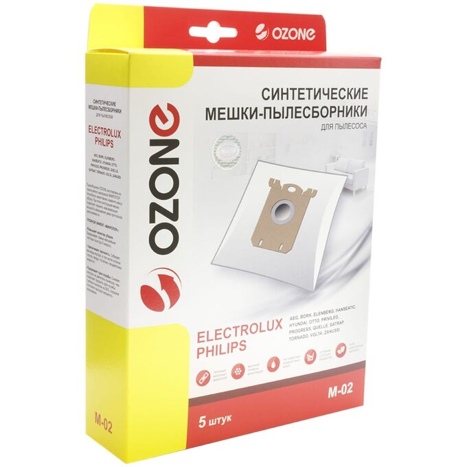 подходят: AEG, PHILIPS, TORNADO, VOLTA, ZANUSSI, бренд: OZONE, арт. M-02, тип оригинального мешка: S-Bag.
