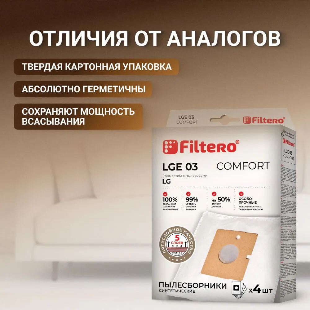 Отличия мешков-пылесборников Filtero LGE 03 Comfort от аналогов: