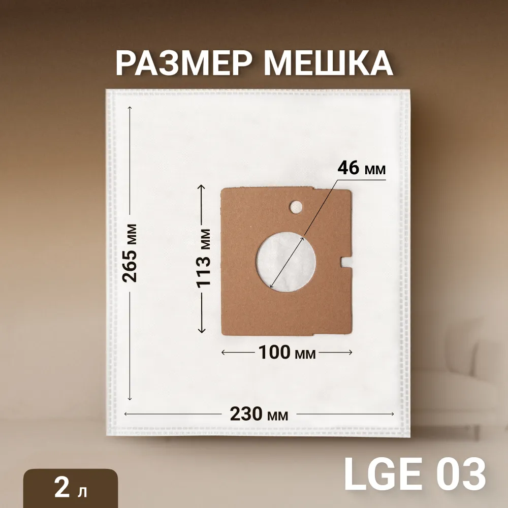 Пылесборники Filtero LGE 03 Comfort для мешковых пылесосов с диаметром входного отверстия 46 мм (размер фланца 113*110 мм) - подходят большинству моделей пылесосов LG (Лджи), Clatronic (Клатроник), Rolsen (Ролсен) и пр.