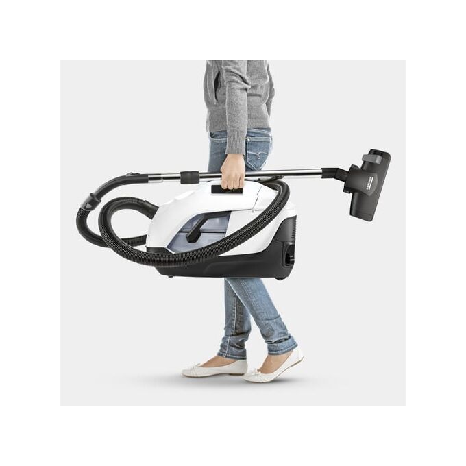 Пылесос с аквафильтром DS 6 Plus тщательно очищает не только полы, но и выпускаемый воздух. Задерживая 99,95 % пыли, он создает в помещениях благоприятный микроклимат. В отличие от обычных пылесосов, оснащаемых фильтр-мешками, в аппарате DS 6 Plus используется водяной фильтр. Внутри него образуется движущийся с высокой скоростью водяной вихрь, отделяющий и связывающий частицы грязи, содержащиеся в засасываемом воздухе. В результате из пылесоса выходит чистый воздух, что обеспечивает создание в доме свежей, здоровой атмосферы.