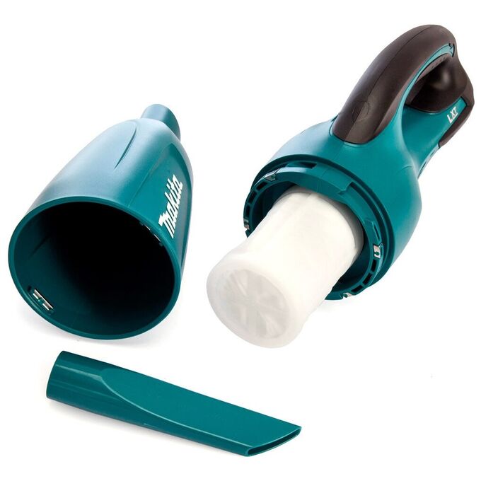 Аккумуляторный пылесос Makita DCL180Z поставляется с широким набором комплектующих, которые расширяют сферу его применения. Обрезиненная рукоять не выскальзывает из рук при работе. Тканевый фильтр и капроновый предфильтр тщательно очищают выходящий воздух. Ролики и шарниры обеспечивают высокий уровень маневренности насадки для уборки пола. Аккумуляторная модель не нуждается в подключении к электросети и может использоваться при отсутствии электроснабжения - для уборки машины, дачного домика.