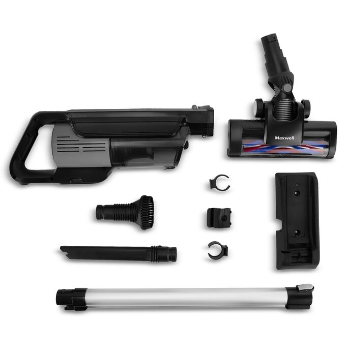 зарядное устройство; кронштейн для крепления на стену; моторизированная щетка для напольных поверхностей; насадки; руководство по эксплуатации