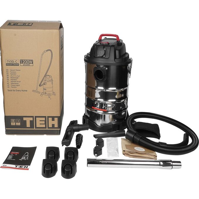 Пылесос строительный TEH TV30L-C предназначен для уборки помещений, а также для использования (синхронным включением) с электроинструментом при принудительном удалении продуктов пиления, строгания, фрезерования и т.п. Имеет возможность для сбора сухого и влажного мусора.