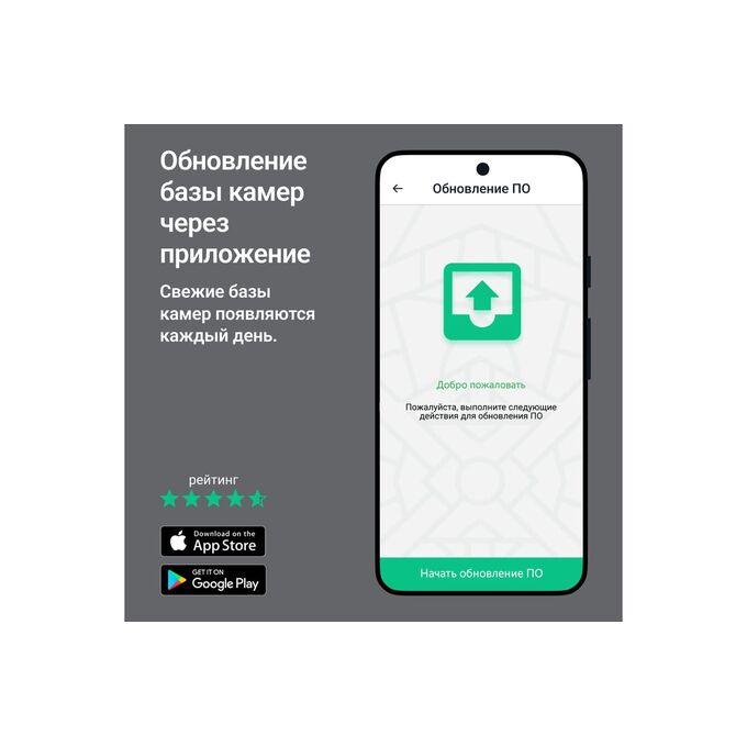 Прибор предупреждает обо всех типах контроля на дороге. Есть wifi модуль, поэтому обновить камеры можно быстро и удобно – в 1 клик через приложение на смартфоне.