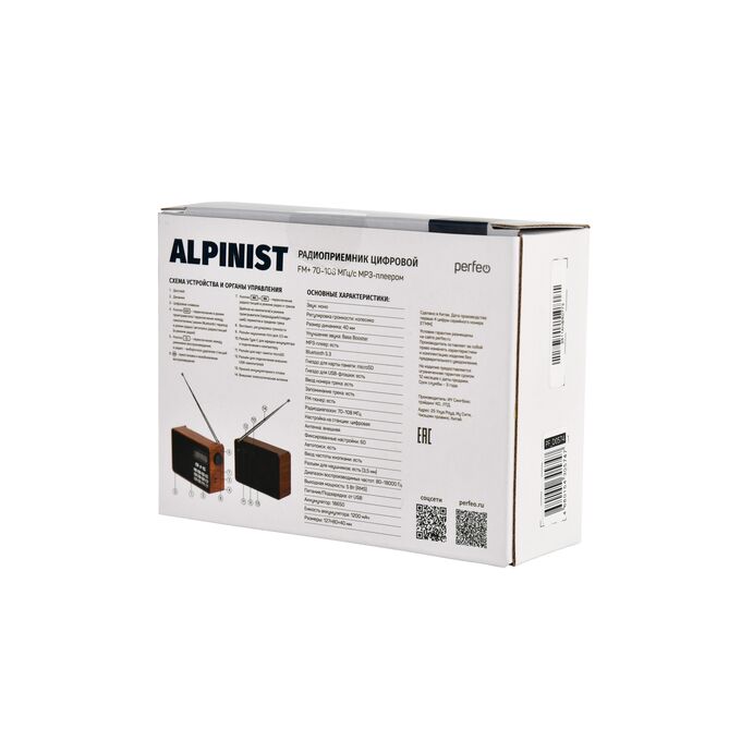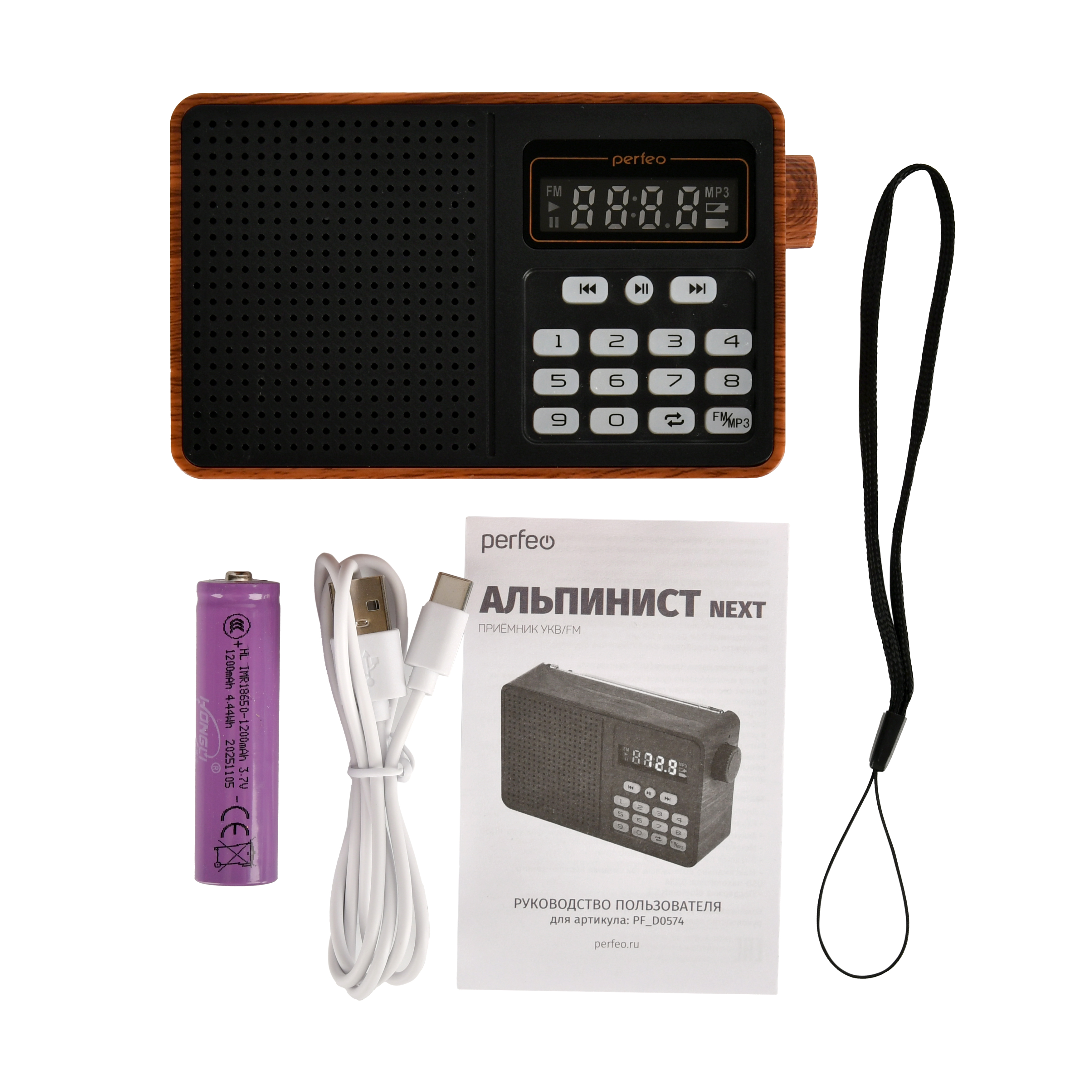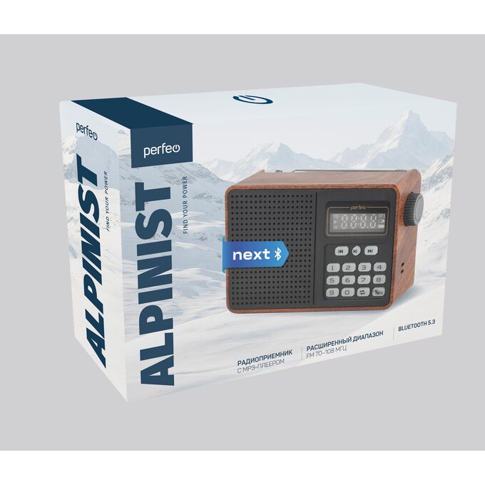 Радиоприемник Bluetooth цифровой Perfeo ALPINIST Next FM+ 70-108МГц/ MP3/ Bluetooth 5.3/ 18650/ Коричневый, (Арт. PF_D0574)