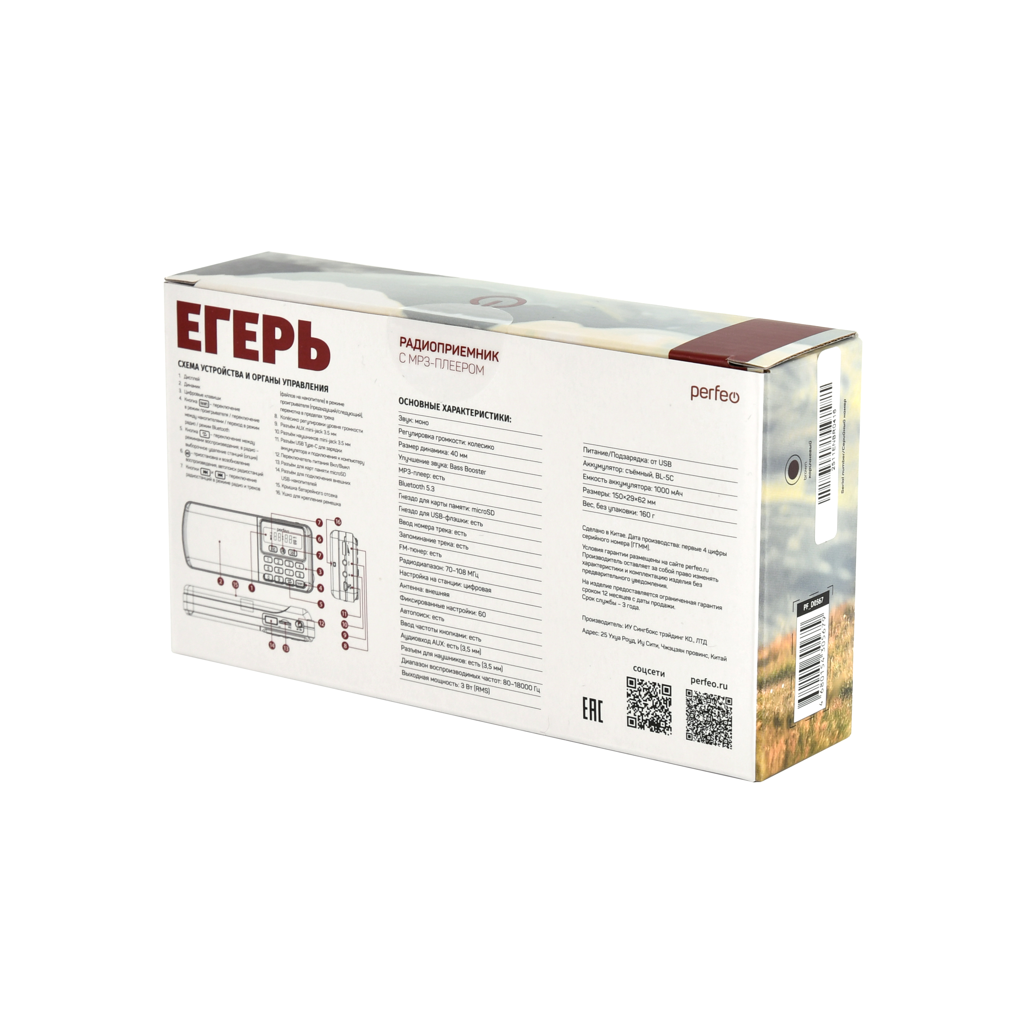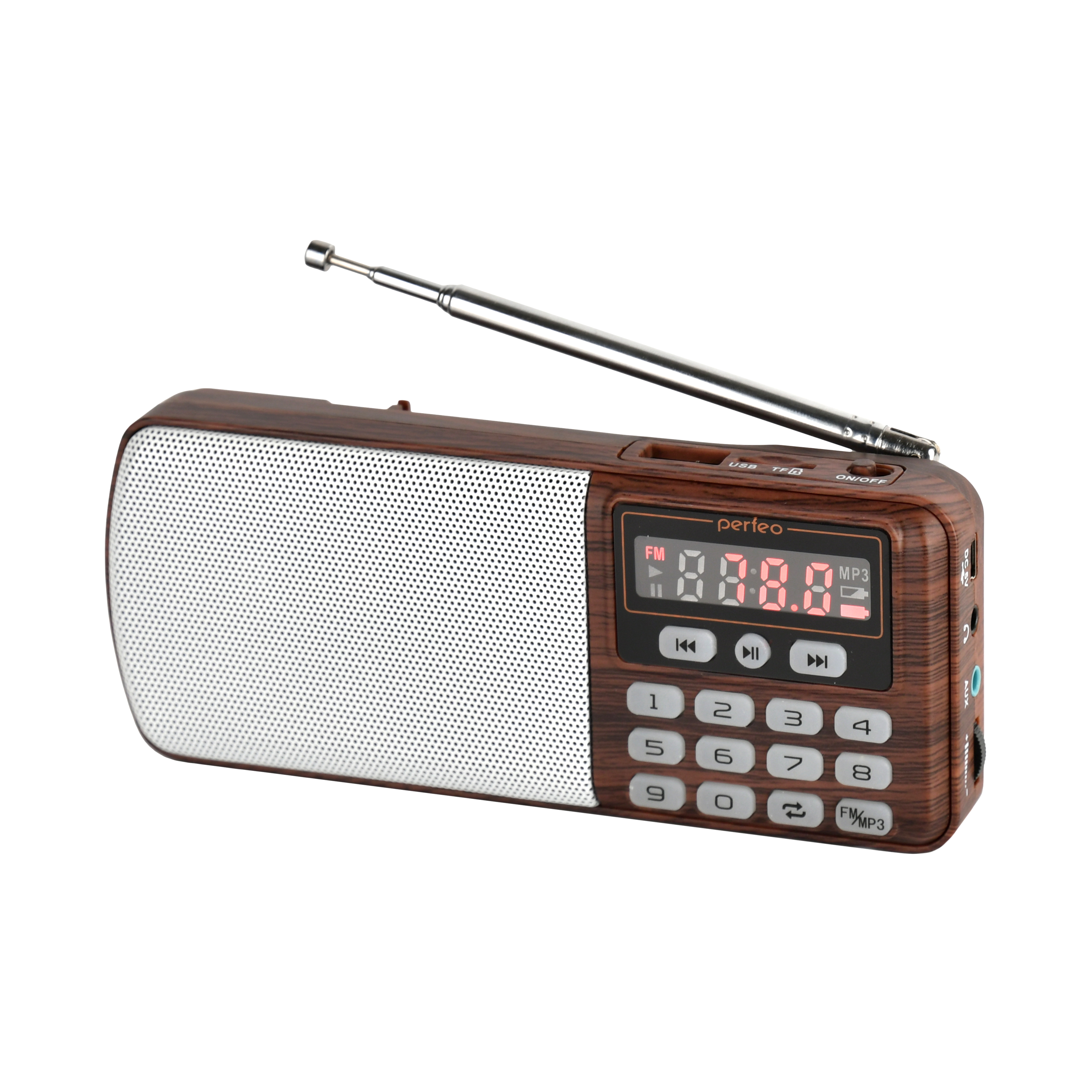Радиоприемник Perfeo i120 ЕГЕРЬ Next с модернизированным радиоблоком и телескопической антенной. С точной цифровой настройкой на станции и шикарным "сочным" звуком воспроизводит MP3-файлы с карт памяти и USB-флэшек. Удобное управление, например, долгое нажатие на кнопку FM запустит автопоиск радиостанций, а с помощью цифровых кнопок легко задать нужную частоту вручную. Любители аудиокниг оценят возможность перемотки до нужного места внутри MP3-трека. Перед включением можно убрать звук на минимум колесиком регулятора громкости, чтобы не побеспокоить домашних или коллег. Расширенный FM+ диапазон (70-108МГц). Умеет работать как внешняя колонка, подключив радио кабелем через AUX разъем. Встроенный сабвуфер BassBooster для усиления низких частот и увеличения глубины звучания. Приемник может работать не только от аккумуляторов, но и от адаптера для зарядки (в комплект не входит) подключенного в сеть 220В. Вы можете использовать радиоприемник от сети находясь дома около розетки.