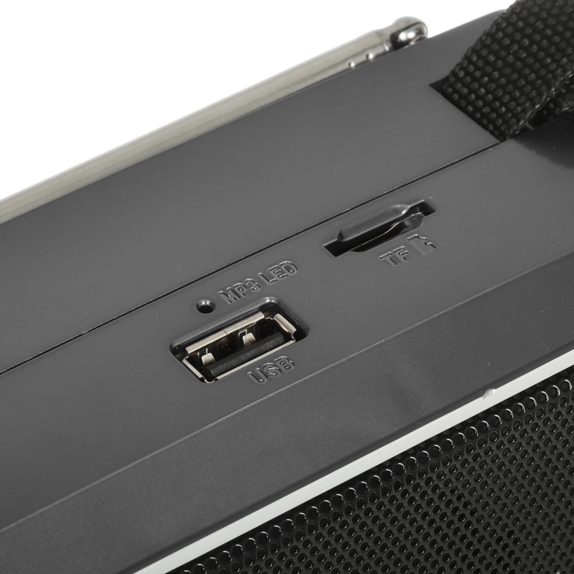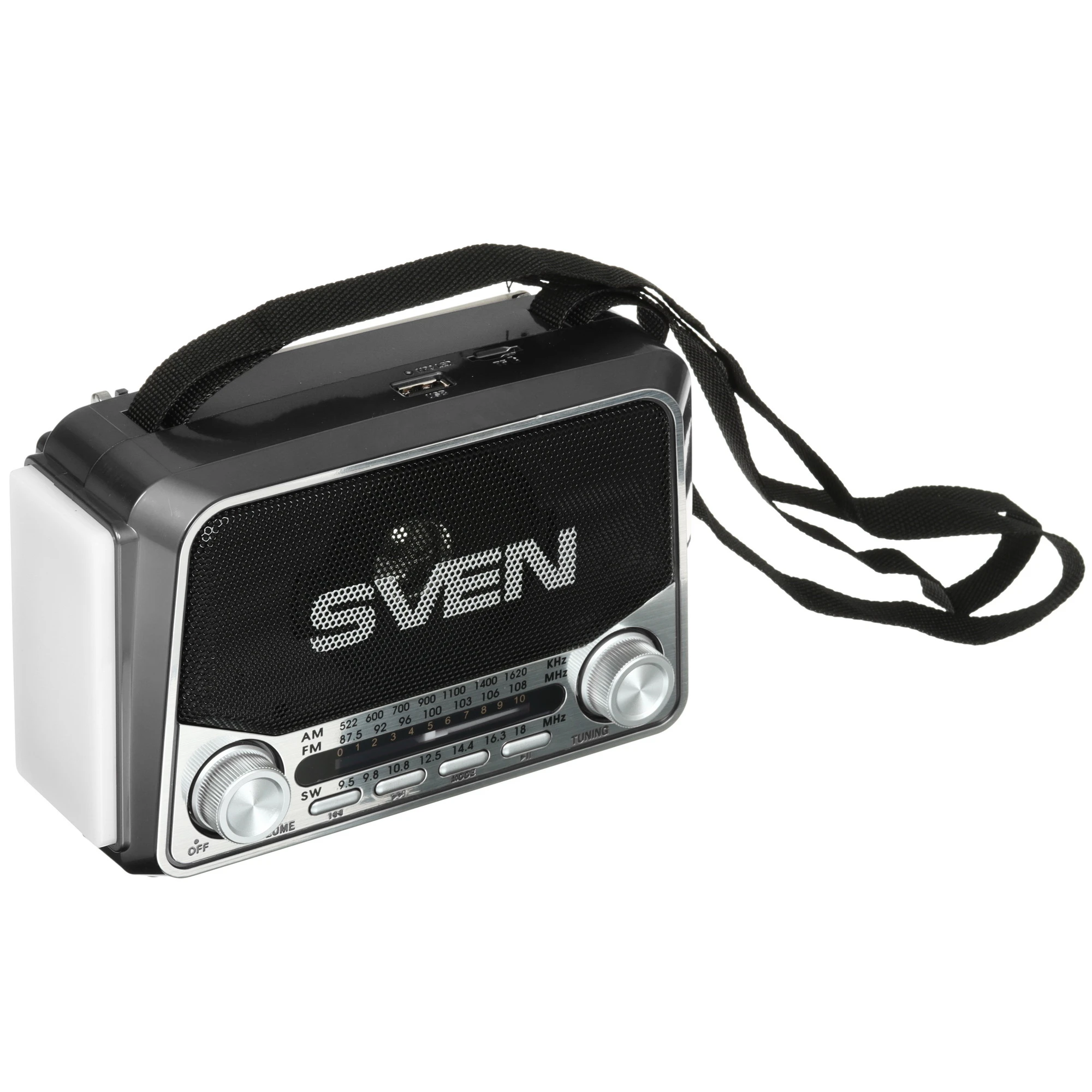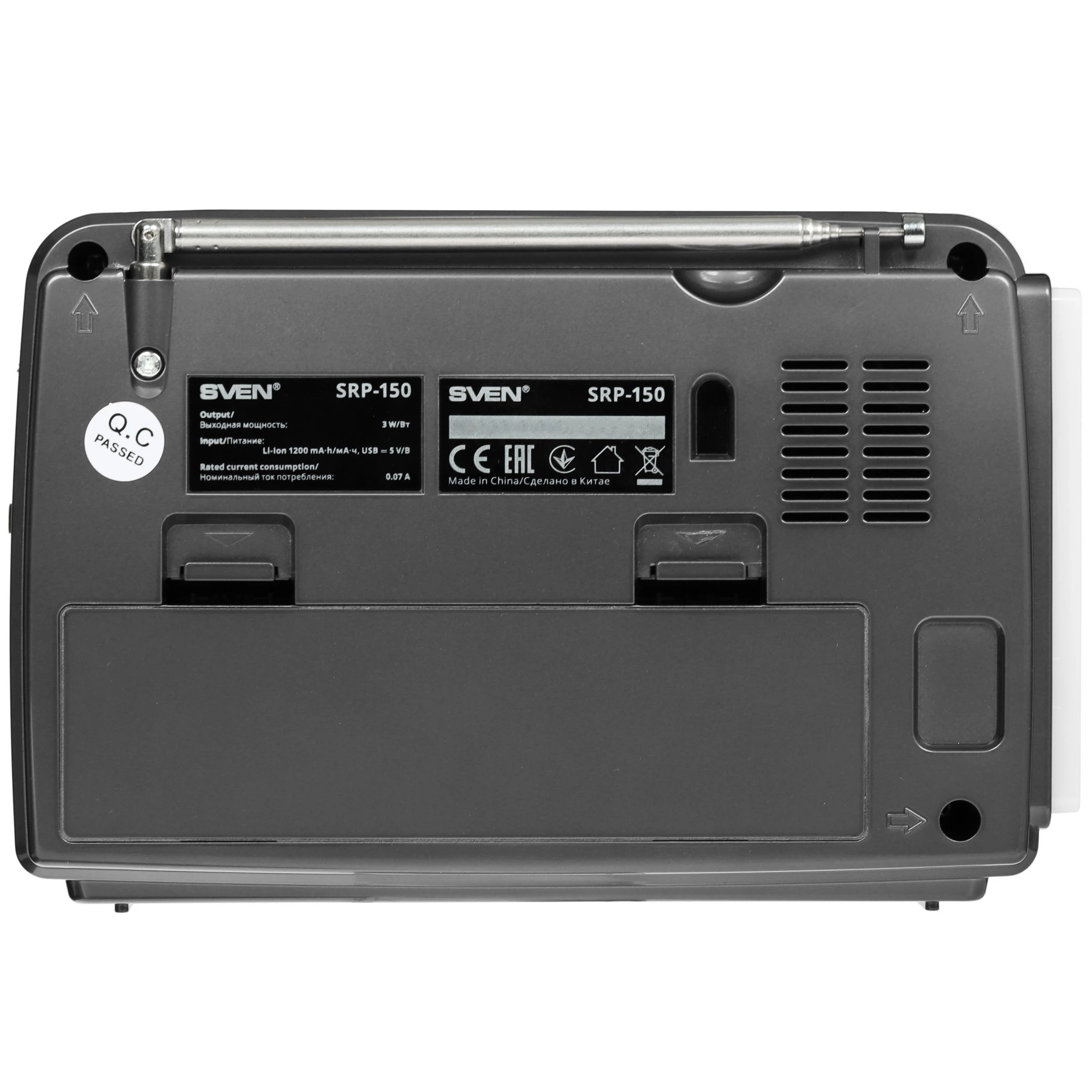 Радиоприемник SVEN SRP-150, серый (3 Вт, Bluetooth, FM/AM/SW, USB, microSD, фонарь, встроенный аккумулятор)