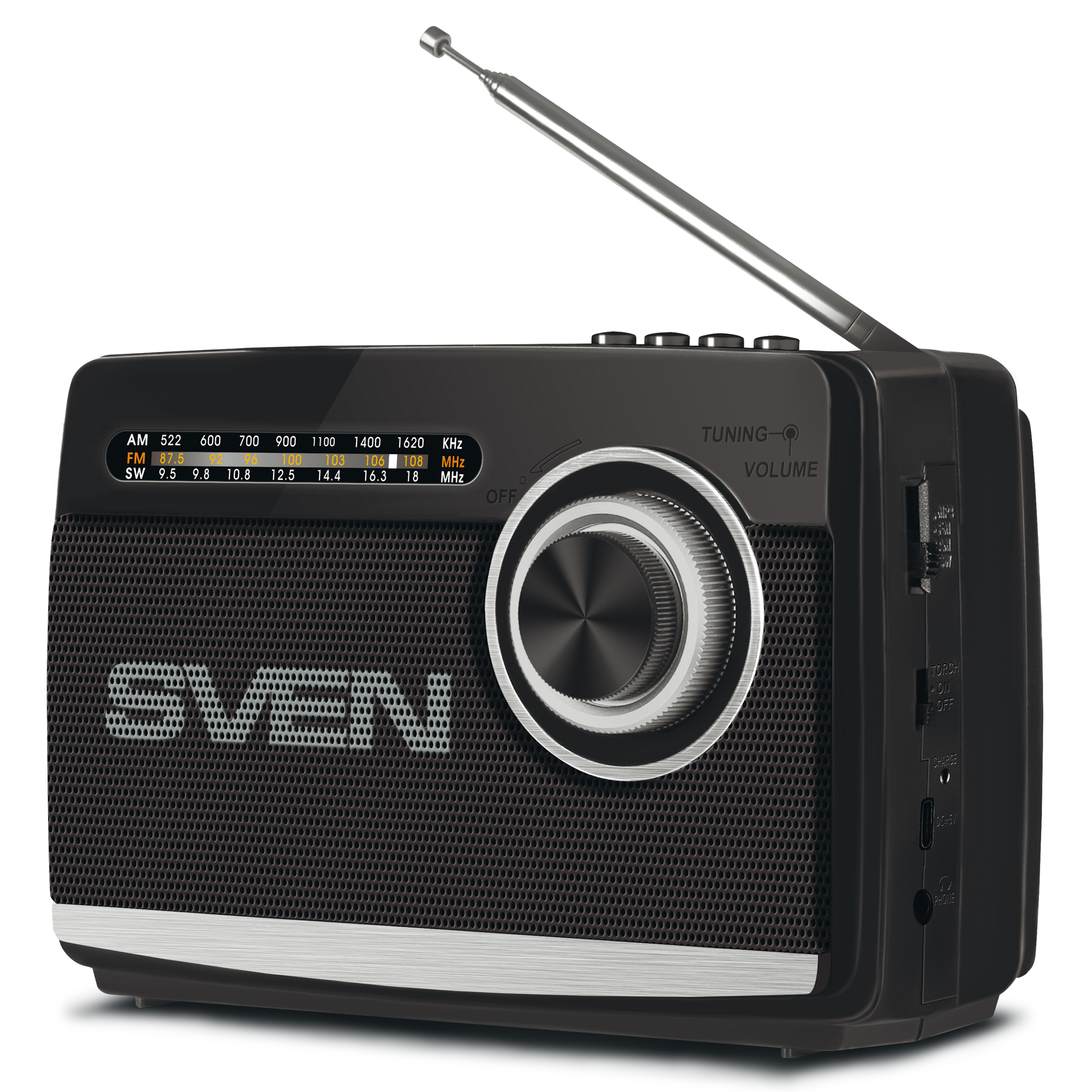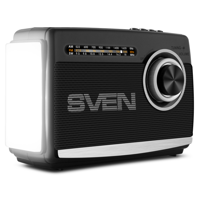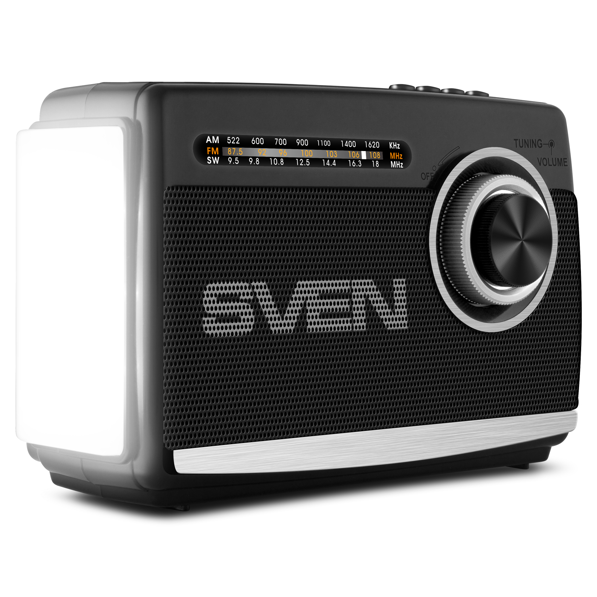 Радиоприемник SVEN SRP-155, чёрный (3 Вт, Bluetooth, FM/AM/SW, USB, microSD, фонарь, встроенный аккумулятор)
