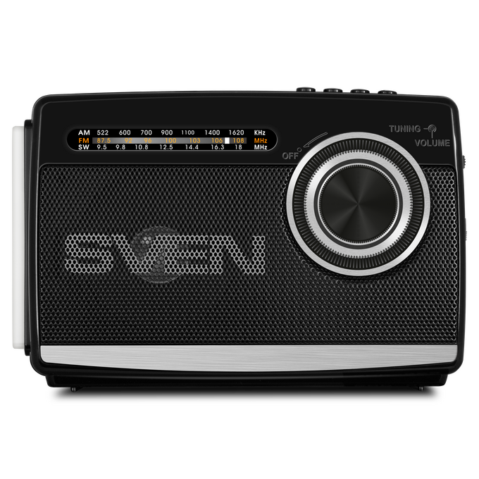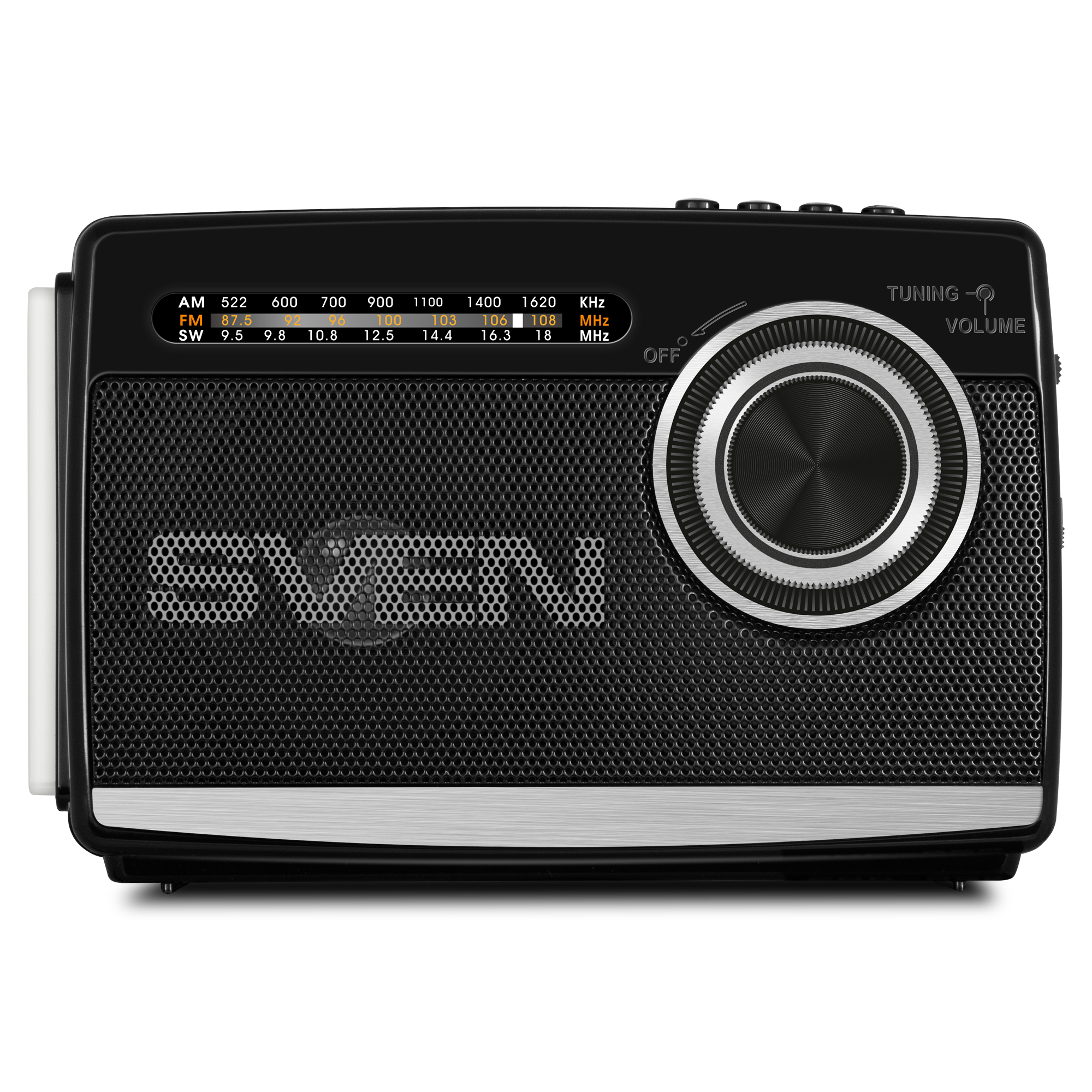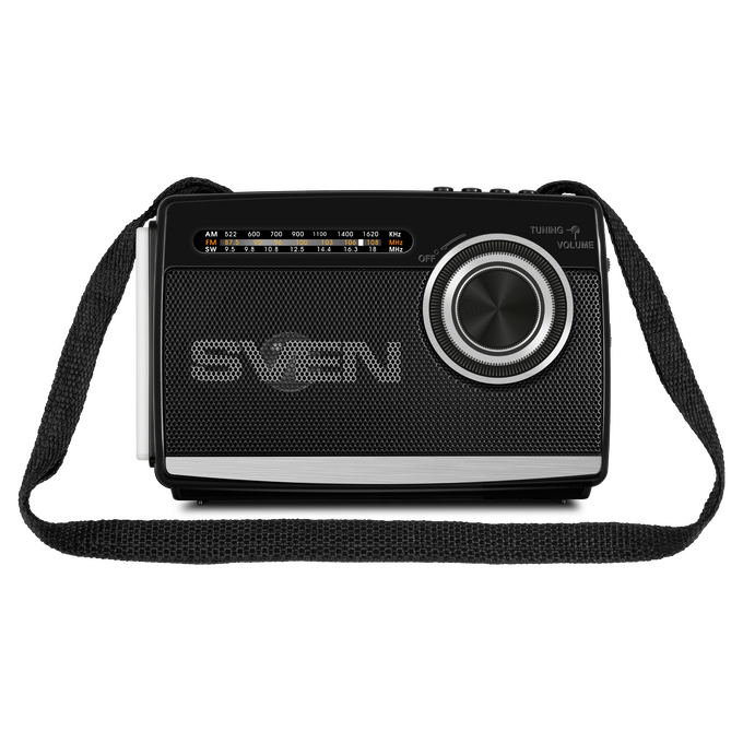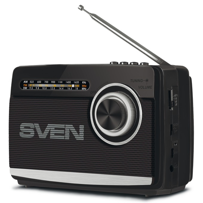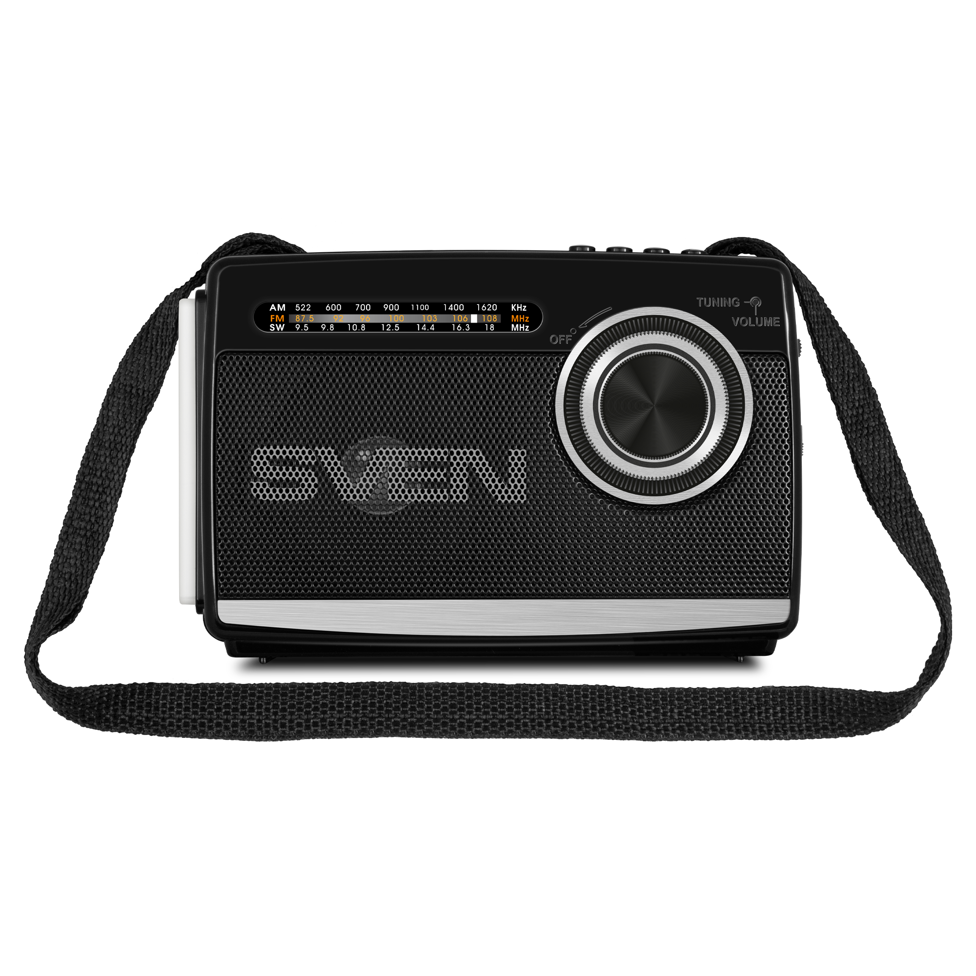 Радиоприемник SVEN SRP-155, чёрный (3 Вт, Bluetooth, FM/AM/SW, USB, microSD, фонарь, встроенный аккумулятор)