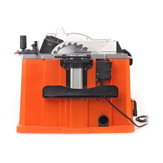 Двигатель мощностью 1500 Вт обеспечивает максимальное число оборотов до 5400 об/мин. Надежный асинхронный двигатель не требует технического обслуживания, сохраняя свои качества на протяжение всего срока службы. Циркулярный станок по дереву с защитой от перегрузок отключится в случае перенапряжения в сети. Для безопасности оператора имеется кнопка аварийного отключения для экстренной остановки двигателя.