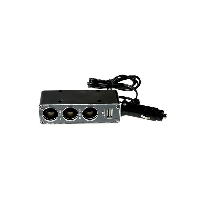 Разветвитель гнезда прикуривателя OLMIO СС-004, 3 гнезда + 1 USB выход 1A + провод-удлинитель