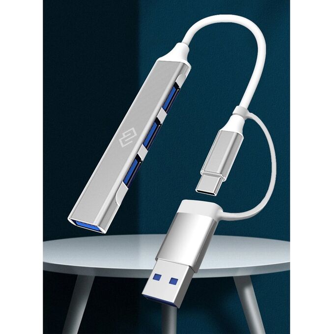 Разветвитель USB-C+USB-A Digma DHUB-4USB-AC-3.0 4порт серебристый