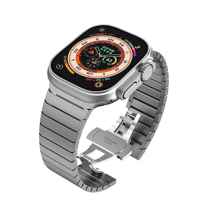 Ремешок - ApW34 металл блочный на застежке Apple Watch 42/44/45/49мм (silver) (230497)