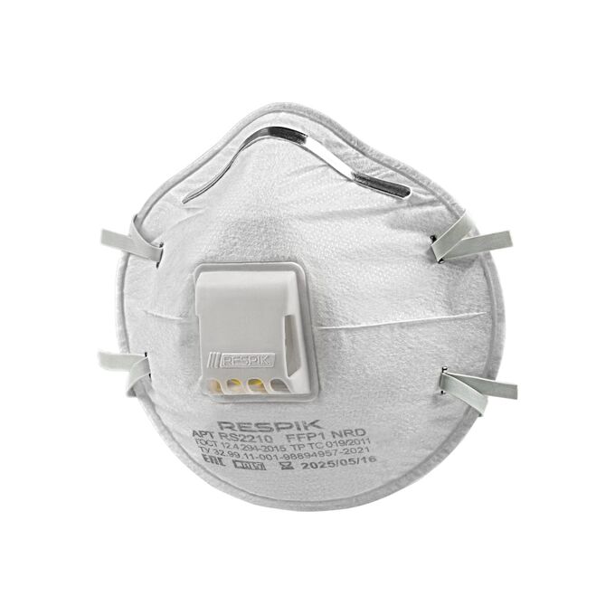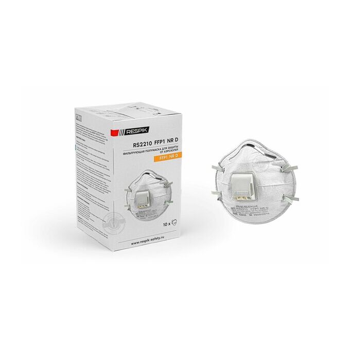 Респиратор RESPIK FFP1 NR D 10шт RS2210 применяется для защиты от твердых и плохо испаряемых жидких аэрозолей с клапаном выдоха.