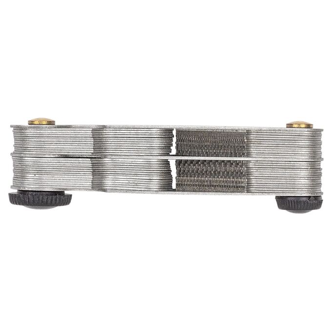 - 52 щупа в одном наборе. Позволяет точно подобрать резьбу без необходимости иметь отдельные шаблоны — экономия места и времени.