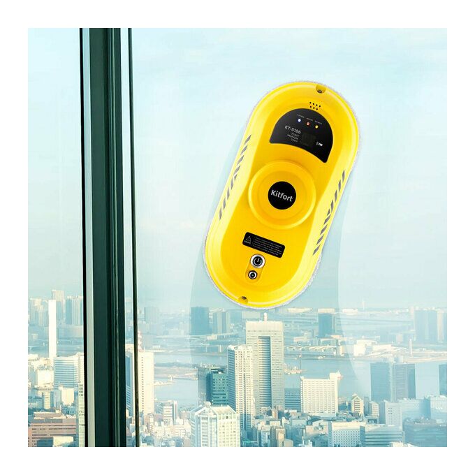 Робот Kitfort КТ-5186 предназначен для мытья стёкол изнутри и снаружи, кафельных и зеркальных покрытий в жилых домах и офисах. Робот оснащён вентилятором, благодаря которому создаётся разрежение, и он надёжно удерживается на вертикальной поверхности.