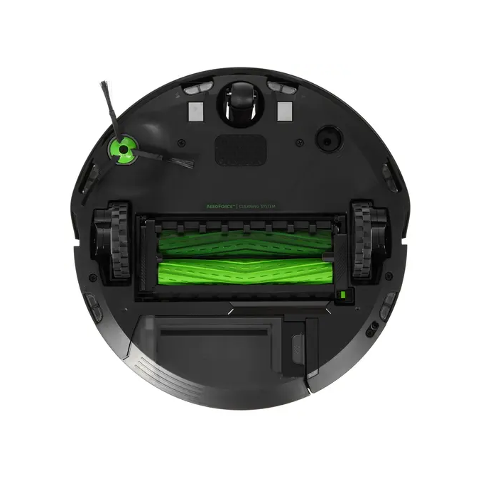Черный робот-пылесос iRobot Roomba j7+ с 3-ступенчатой системой сухой уборки и станцией самоочистки прост в управлении и обслуживании. 2 боковые щетки подметают пыль в углах и направляют собранный мусор к центральной силиконовой насадке. Мощности 60 Вт хватает для всасывания крупных и мелких загрязнений в контейнер объемом 450 мл.