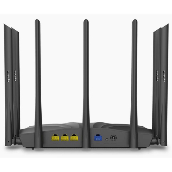 AC 23 – двухдиапазонный гигабитный Wi-Fi маршрутизатор, созданный для высокоскоростного доступа к Интернет. Маршрутизатор поддерживает технологию 802.11ac wave2 и гарантирует скорость передачи данных по Wi-Fi до 2033 Мбит/с : 300 Мбит/с в диапазоне 2.4 ГГЦ и 1733Мбит/с в диапазоне 5ГГц. Благодаря технологии 4х4 MU-MIMO в диапазоне 5ГГц, зона покрытия и скорость доступа по Wi-Fi увеличиваются, по сравнению с обычными маршрутизаторами с технологией 3х3 MU-MIMO. При использовании всех гигабитных портов проводная скорость доступа может достигать 1000 Мбит/с. Процессор с частотой 1 ГГЦ и сопроцессор в 500 МГц, произведённые по двухъядерной 28нм технологии, дают более высокую скорость обработки данных и оптимизируют весь процесс работы оборудования. АС23 оборудован 7 внешними всенаправленными антеннами по 6дБи и бесподобен в своей производительности и способности передавать сигнал сквозь стены.