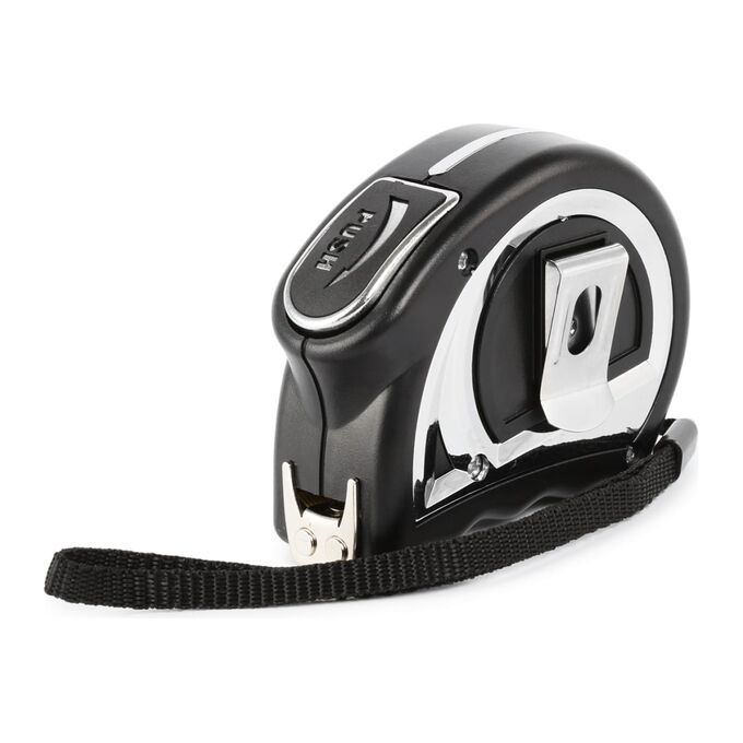 Инструмент оснащен удобным механизмом фиксации – автостоп. Полотно удерживается автоматически, для сматывания ленты достаточно нажать на кнопку.
