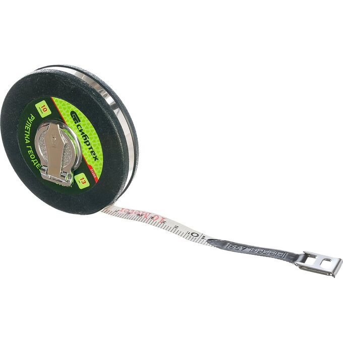Рулетка геодезическая Сибртех 31260 дл.полотна 10м изм.шкала в см зацеп простой зеленый