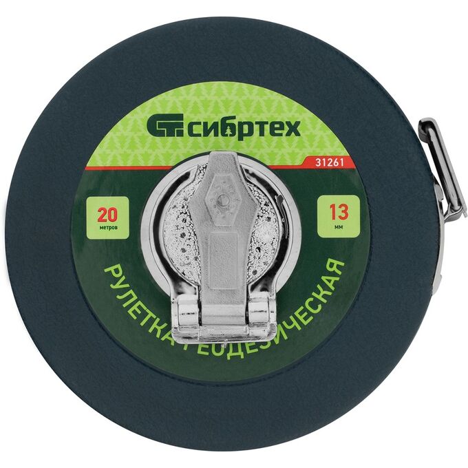 Рулетка геодезическая Сибртех 31261 дл.полотна 20м изм.шкала в см зацеп простой зеленый
