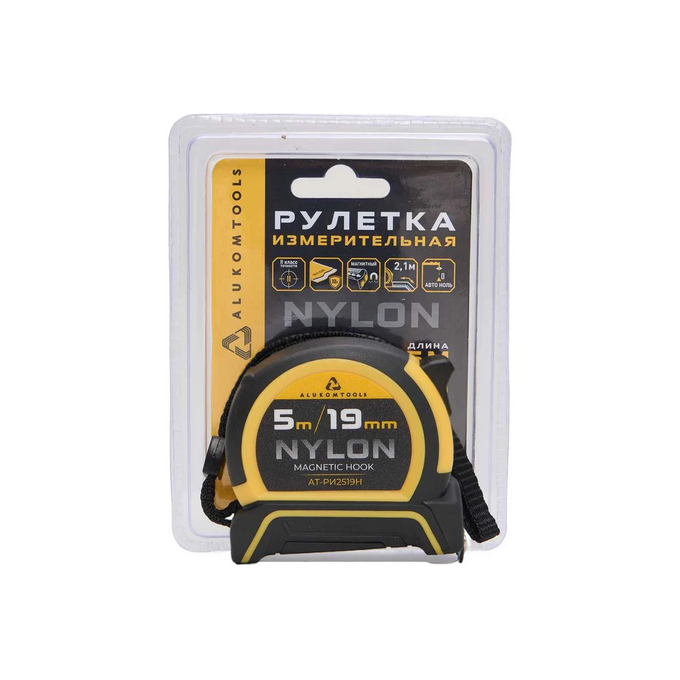 Рулетка измерительная ALUKOMTOOLS АТ-РИ2519Н 5мх19мм, нейлоновое покрытие, магнитный зацеп