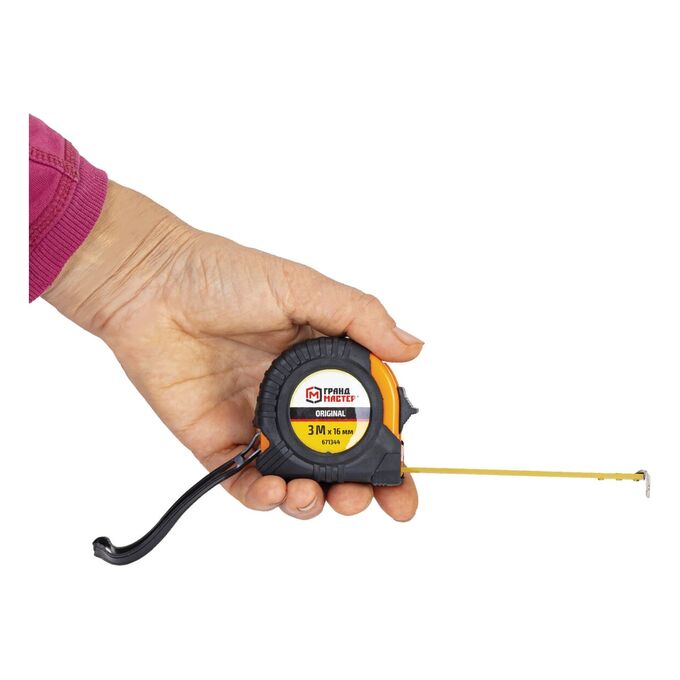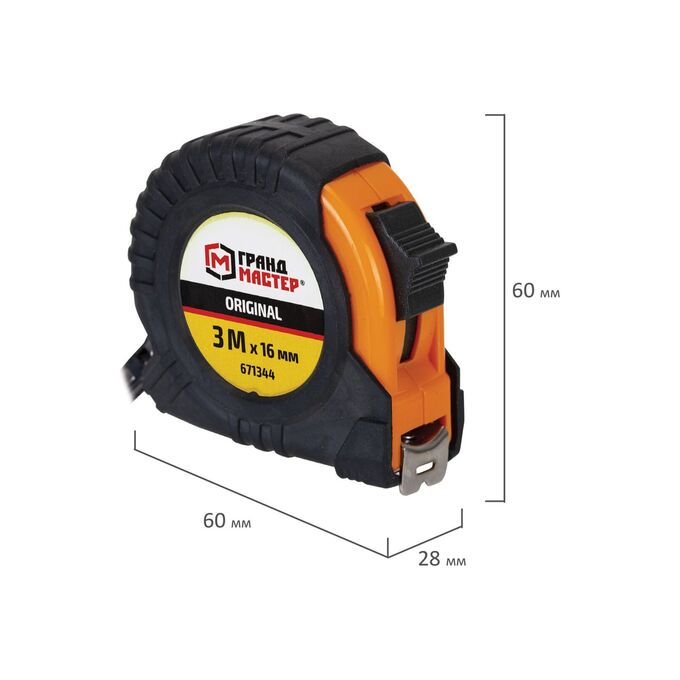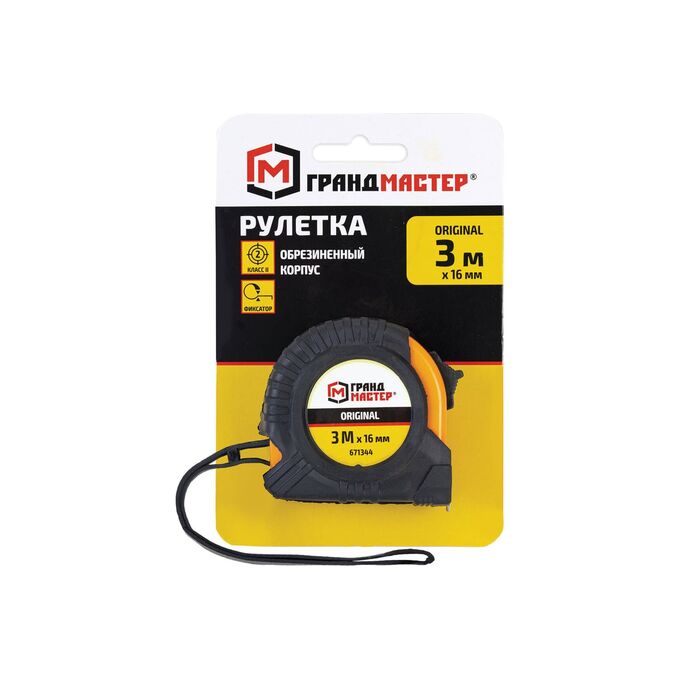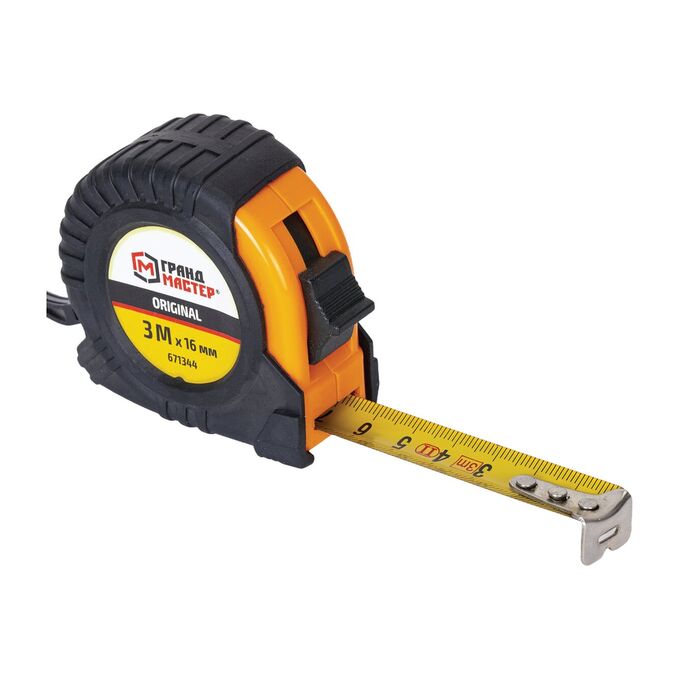 Рулетка измерительная ГРАНДМАСТЕР 671344 Original 3м*16мм, обрезиненный корпус, с фиксатором
