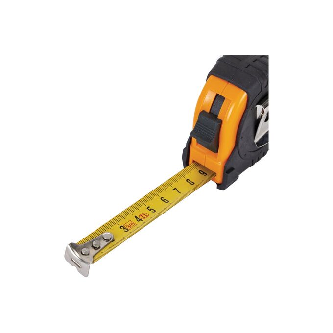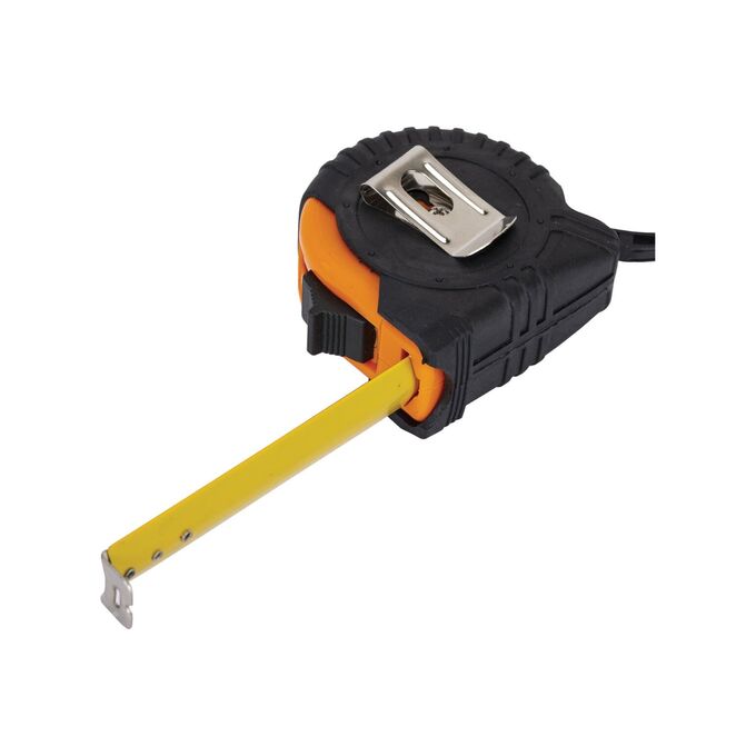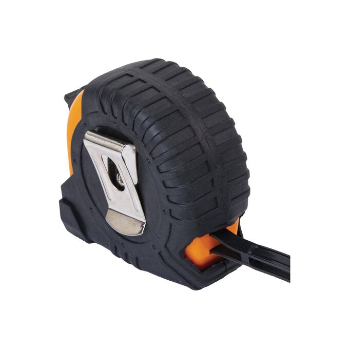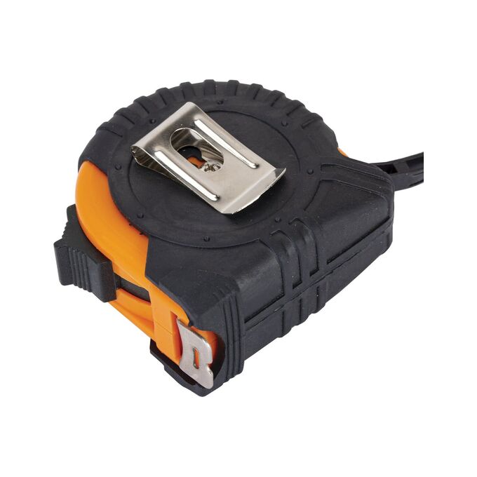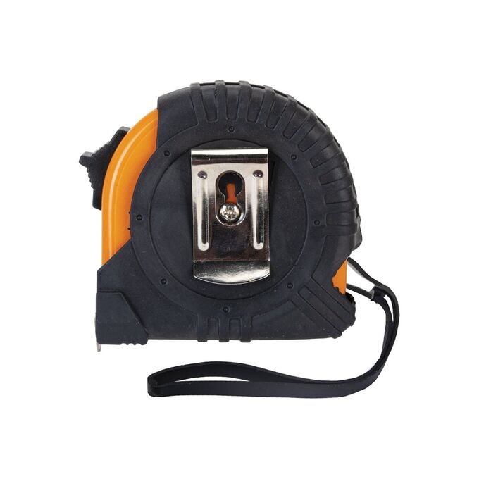 Рулетка оснащена ремешком для ношения на запястье, а также металлической клипсой для крепления на поясе. Эргономичный дизайн с вертикальным фиксатором измерительной ленты позволит использовать рулетку даже одной рукой.