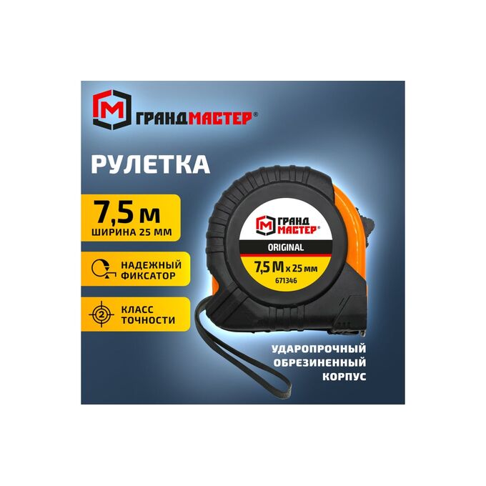 Рулетка измерительная ГРАНДМАСТЕР 671346 Original 7,5м*25мм, обрезиненный корпус, с фиксатором