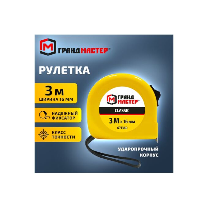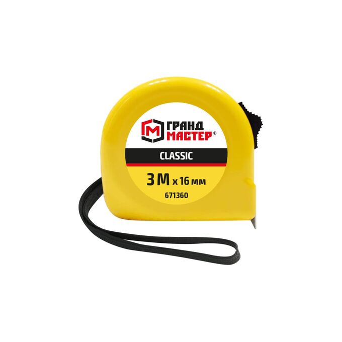 Рулетка измерительная ГРАНДМАСТЕР 671360 Classic 3м*16мм, пластиковый корпус, с фиксатором