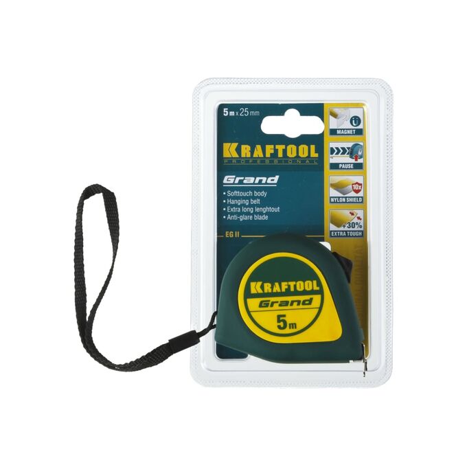 Рулетка 5 м, 25 мм, обрезиненный пластиковый корпус используется для проведения надежных и качественных измерений.