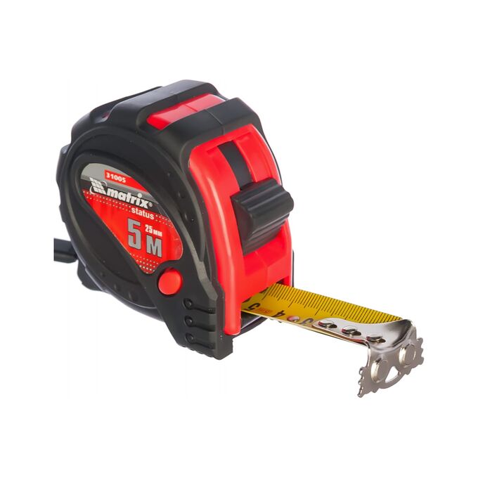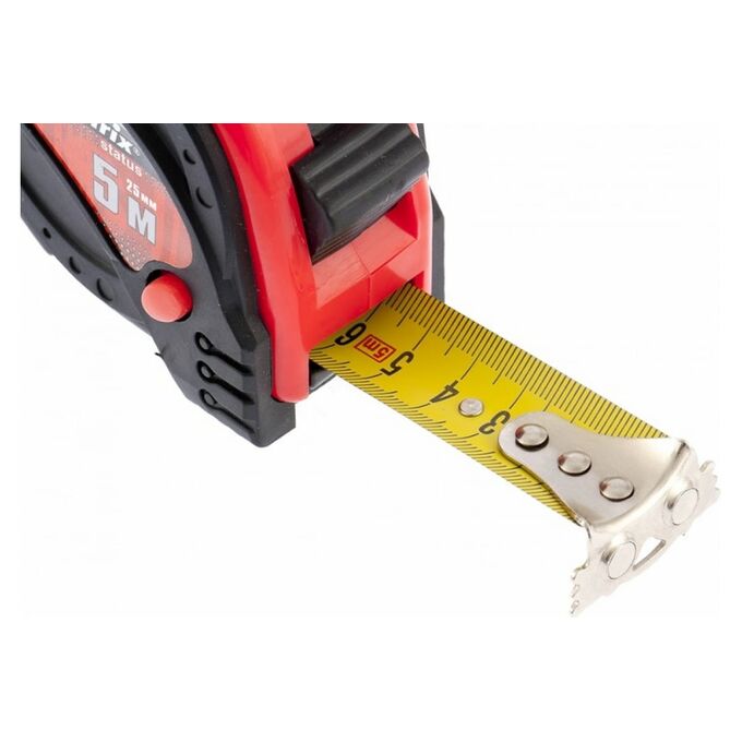 2.Измерительная лента рулетки 5 м х 25 мм Status magnet 3 fixations MATRIX 31005 имеет полимерное покрытие, поэтому она меньше подвержена истиранию и абразивному воздействию.