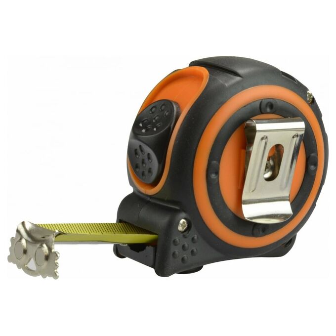 Рулетка имеет достаточную ширину полотна для исключения переламывания при значительном вылете. Специальное нейлоновое покрытие полотна обеспечивает дополнительную защиту. Инструмент оснащен амортизатором смотки для защиты от повреждений.