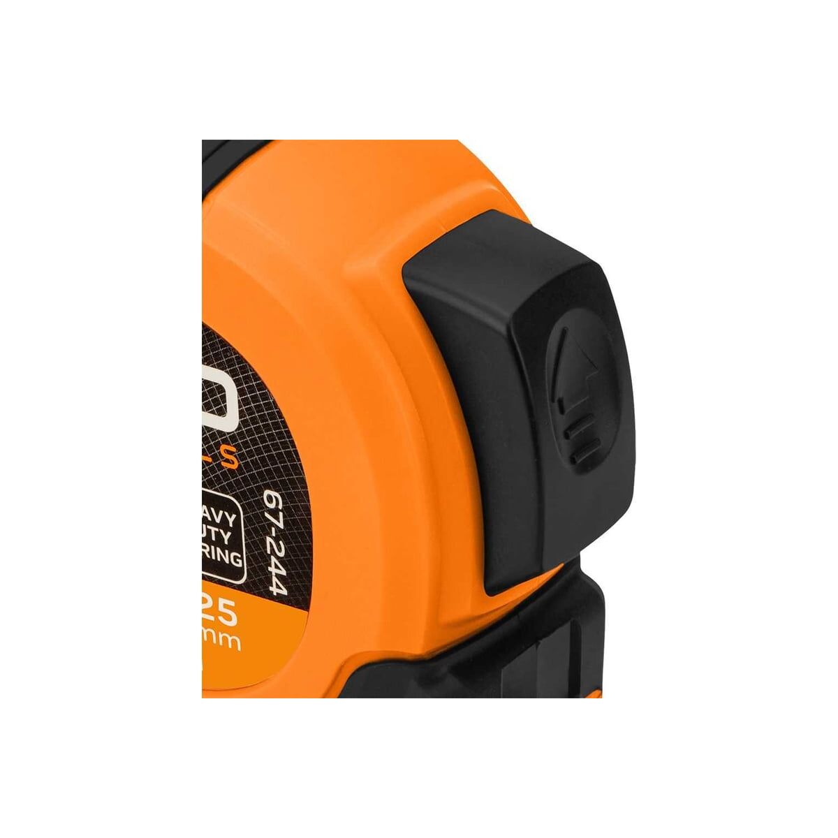 Рулетка NEO TOOLS 67-244 стальная Super Black 7,5 мх25 мм, автоблокировка, две кнопки остановки, магнит