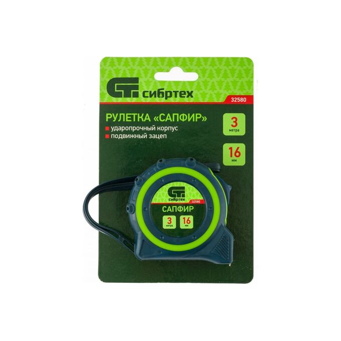 Рулетка Сибртех Сапфир 32580 двухкомпонентный корпус, 3 мх16 мм
