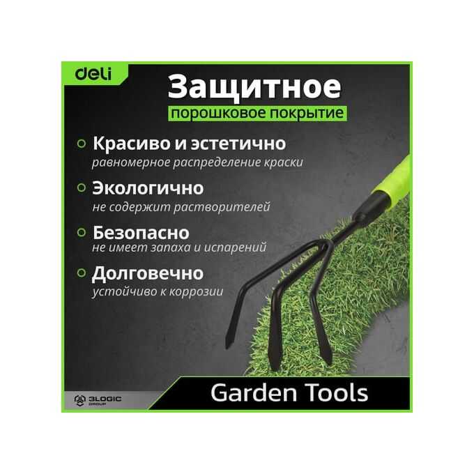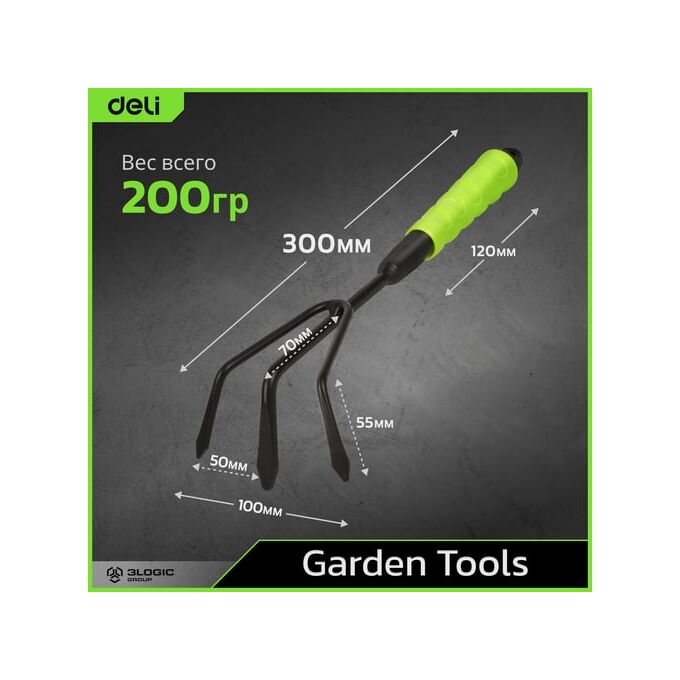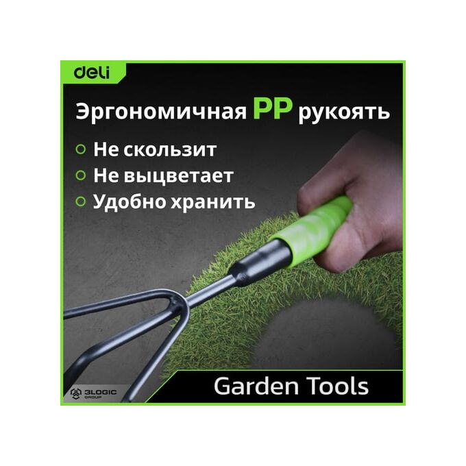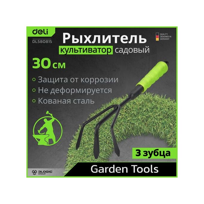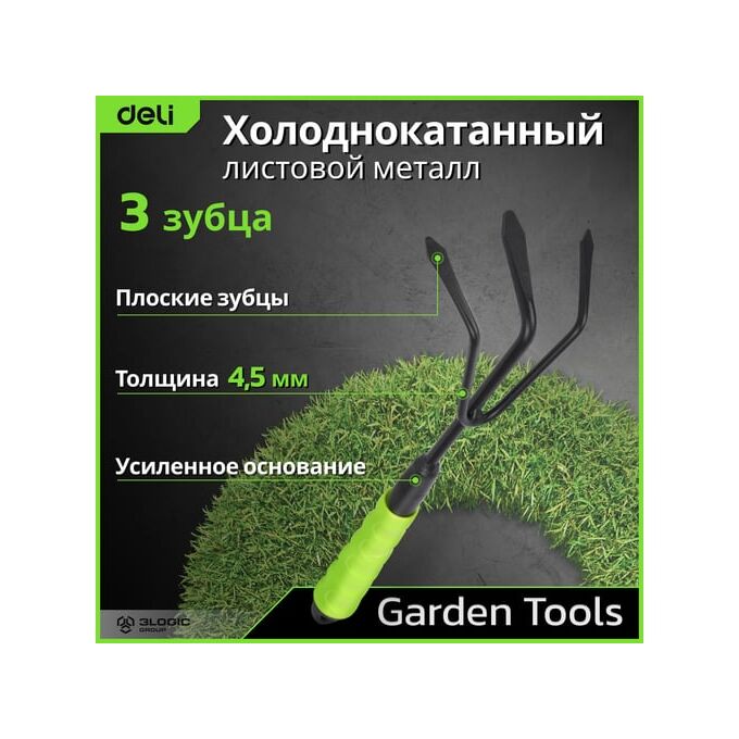 Рыхлитель садовый Deli DL580815 ручной трехзубый длина 30 см, защита от ржавчины и коррозии, противоскользящая рукоять