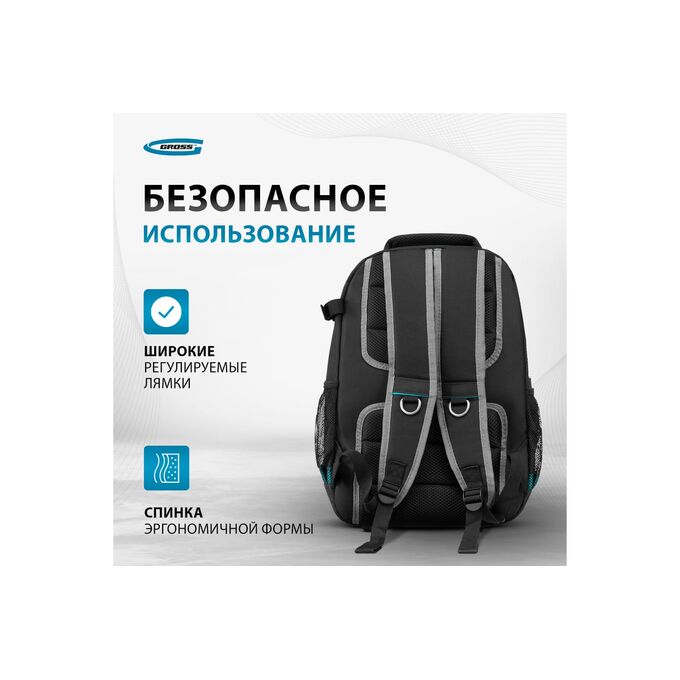 - GROSS 450x340x170мм 90278 имеет большое количество карманов – 5 в рюкзаке (1 внутри и 4 снаружи) + 8 в органайзере
