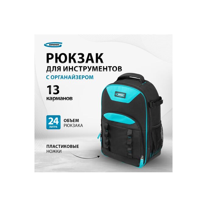 Рюкзак для инструмента GROSS 450x340x170мм 90278 с 13 карманами предназначен для транспортировки ручного и электроинструмента.