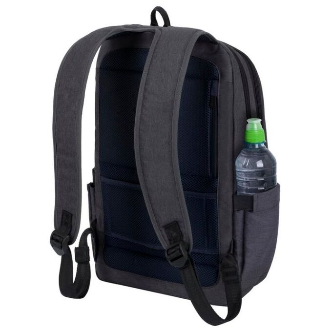 Рюкзак в спортивном стиле из высококачественной, водоотталкивающей ткани. Утолщенные стенки для защиты ноутбука от ударов, пыли, влаги. Дополнительное внутреннее отделение для планшета до 10.1". Два боковых кармана для ёмкостей с водой. На задней стенке имеется ремень крепления к багажной сумке.