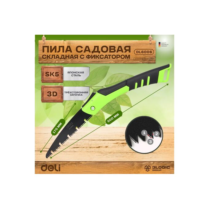 Садовая пила складная Deli DL6006 180мм сталь 65MN
